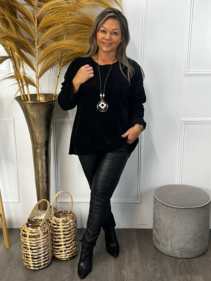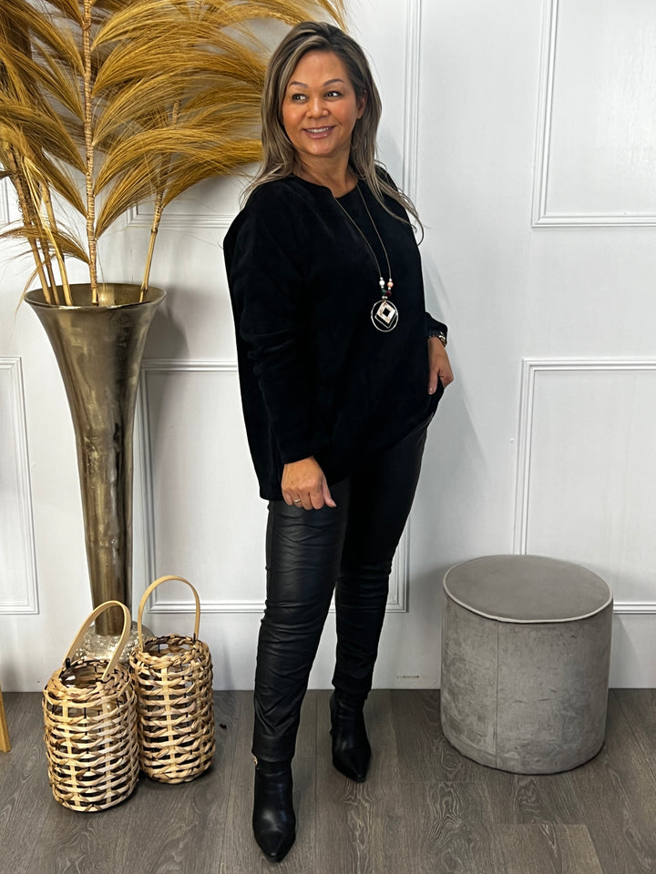 - Model: Onze sweater Lina is gemaakt van een superzachte baby-rib stof en voelt heerlijk warm en comfortabel aan. De losse, relaxed fit valt prachtig en maakt haar ideaal voor zowel een casual look als een geklede outfit. Als extra verrassing wordt deze trui geleverd met een gratis stijlvolle ketting, waarmee je look meteen compleet is.