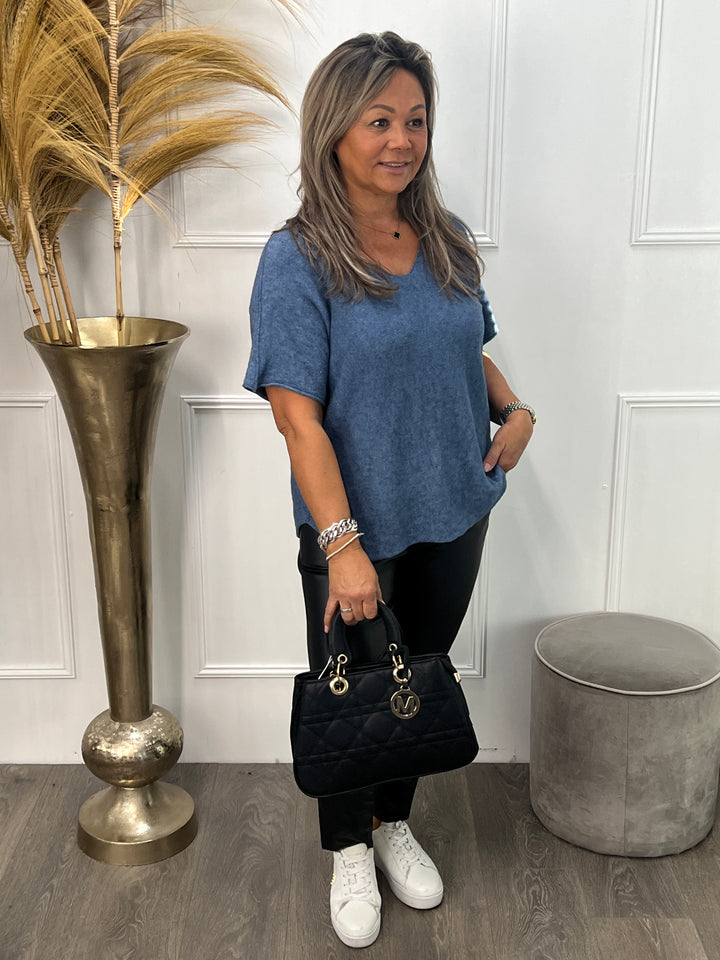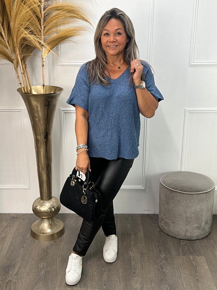 - Model: Een heel fijn basis truitje met korte mouwen en een v-hals. Echt perfect om onder een blazer of jackie te dragen. Verkrijgbaar in verschillende kleuren. Welke kleur is jouw favoriet.