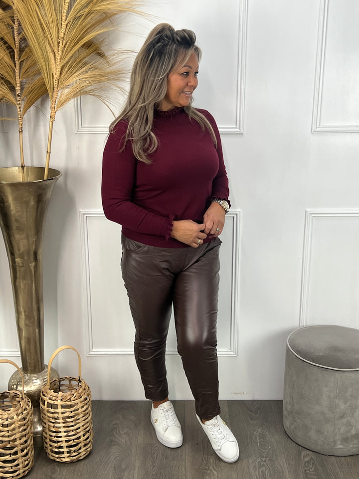 - Model: Een heerlijk fijn en zacht basistruitje die niet mag ontbreken in jouw kledingkast. Maribel is het sierlijke zusje van Sophie met haar subtiele roezeltje rondom de nek en de polsen. Verkrijgbaar in verschillende kleuren en twee maatsoorten.