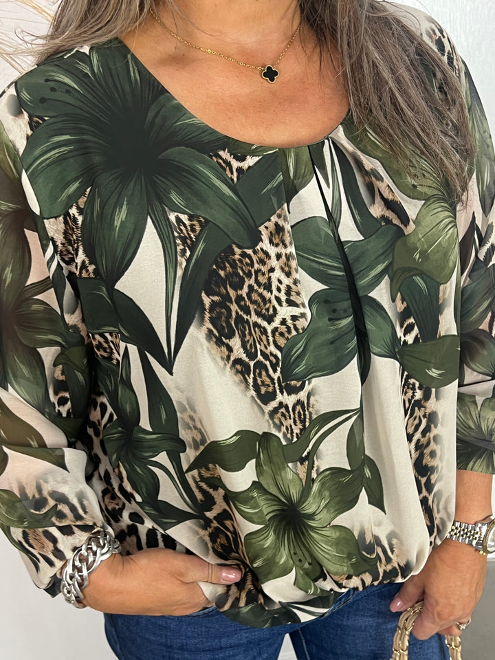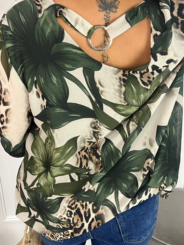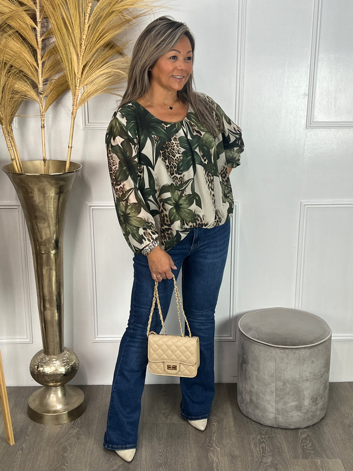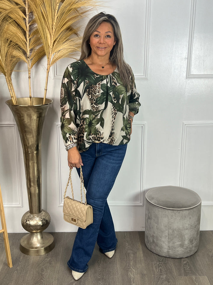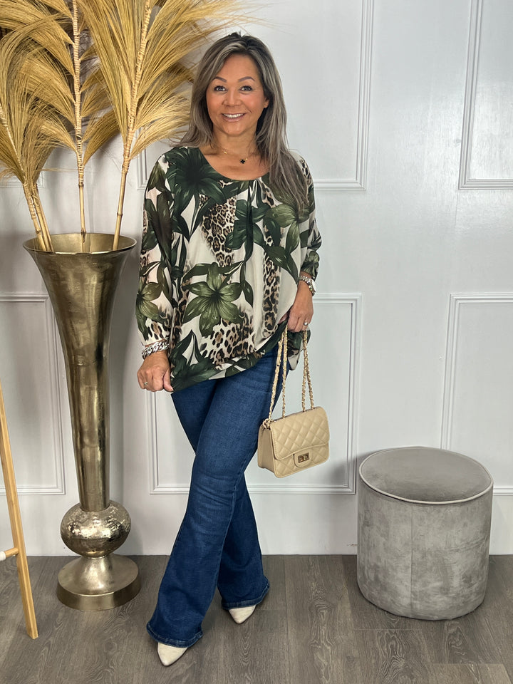 - Model: Een hele leuke, ruimvallende, gevoerde blouse met een leuk detail op de rug in de nek. Voorzien van een gezellige print en verkrijgbaar in warme kleuren.