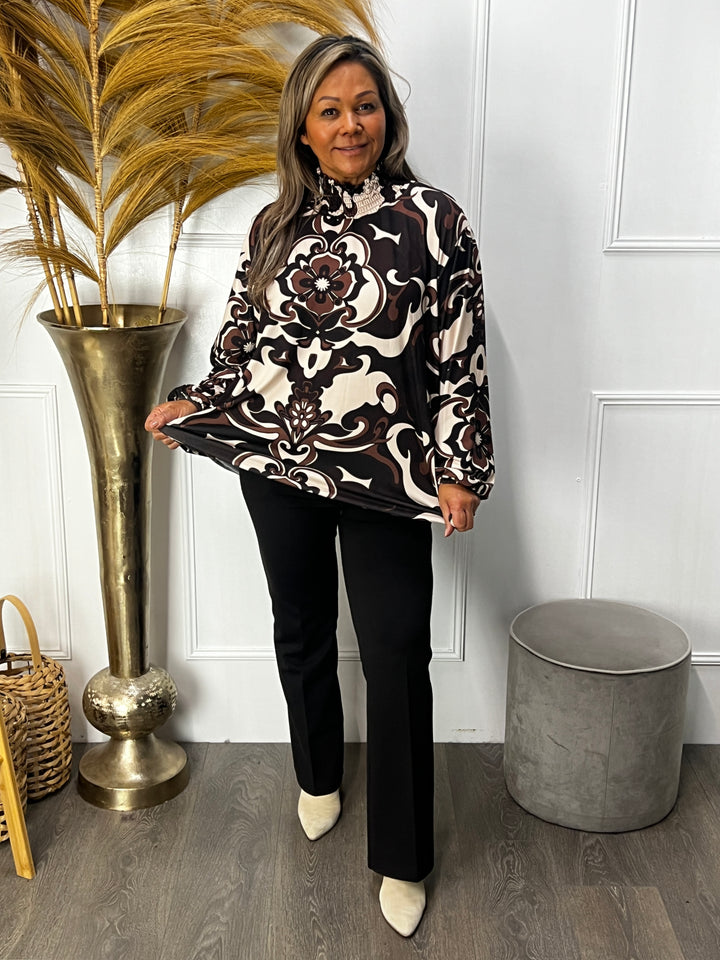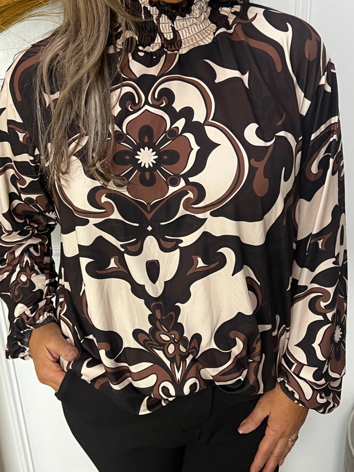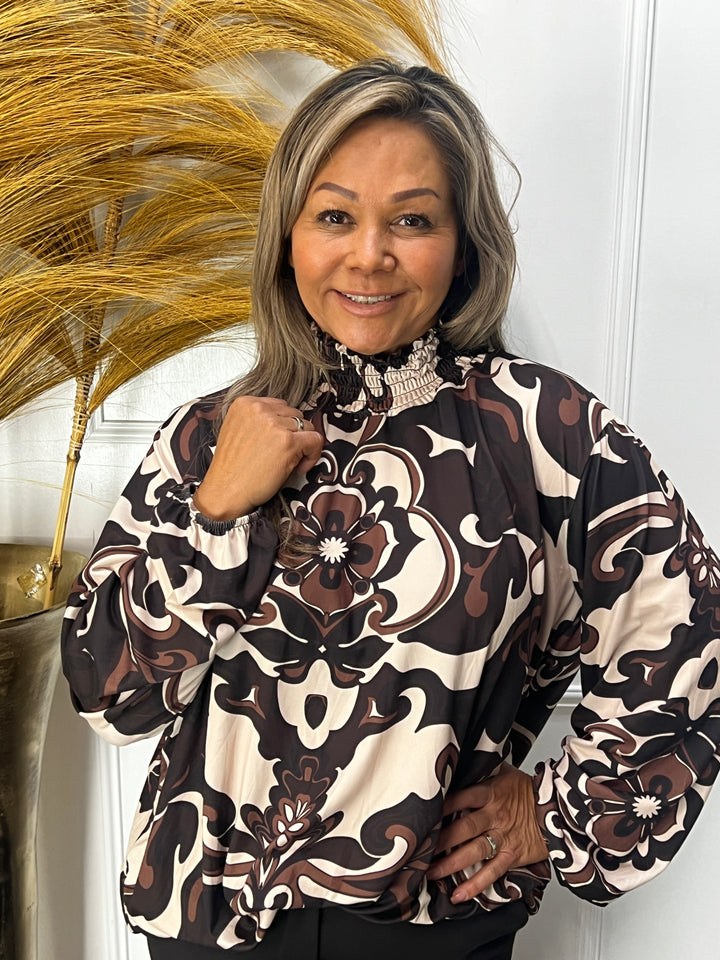 - Model: Een prachtige blouse die lekker ruim valt. Voelt zacht en fijn aan, heeft een mooie print en is voorzien van lange mouwen en een smock kraag. Te leuk! Voor welke kleur ga jij?