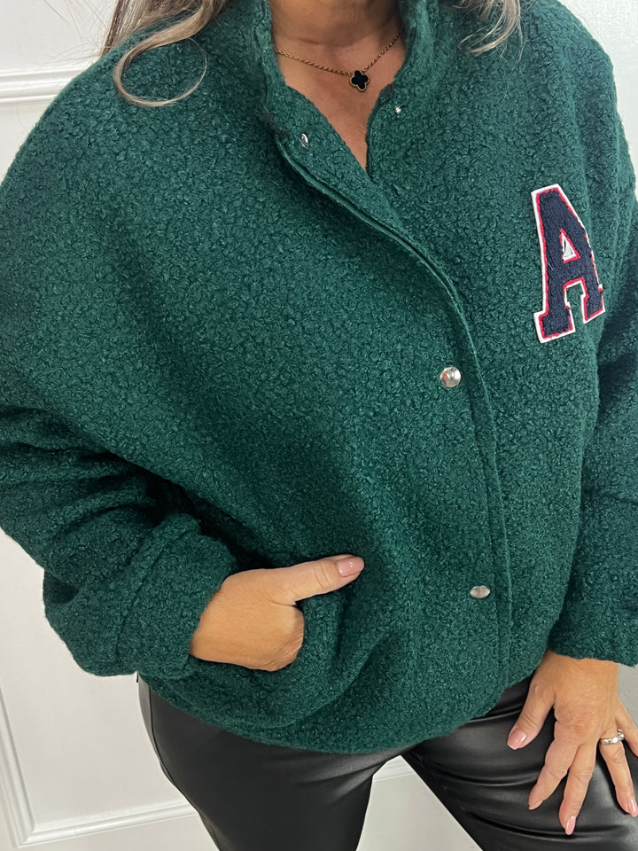 Bouclé bomber jas A Italiaans groen