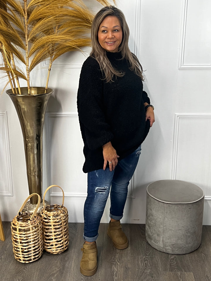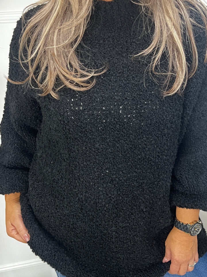 - Model: Onze nieuwe bouclé trui Noa is dé musthave voor het najaar en de winter. Heerlijk zacht, warm en super comfortabel dankzij de luchtige bouclé-structuur. De trui heeft een iets hogere kraag en valt lekker ruim.