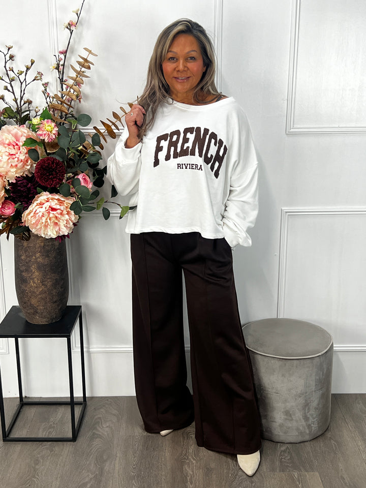 - Model: Een hele comfortabele, maar super mooie broek met een elastische tailleband en een aantrekveter. De broek is voorzien van een zichtbare naad aan de voorzijde, voor net dat beetje extra.