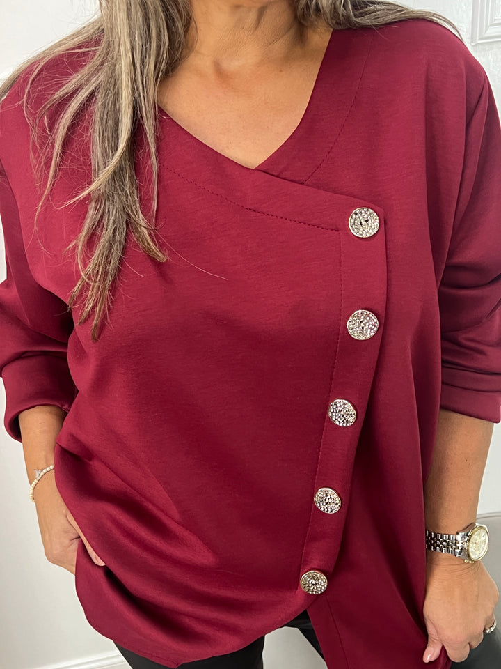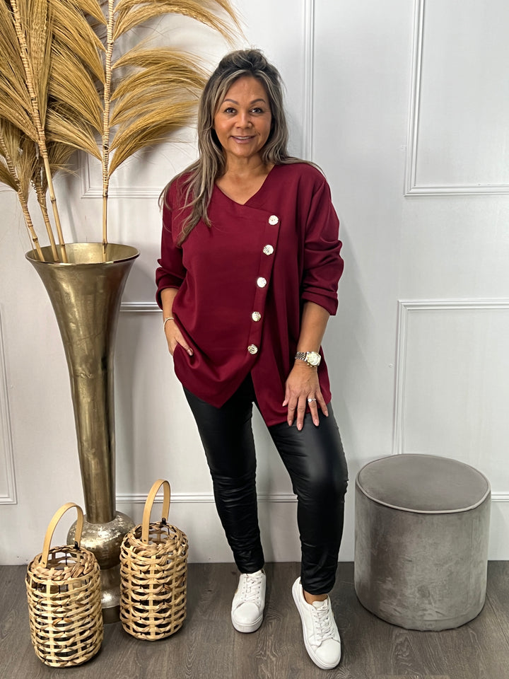 - Model: Een bijzondere sweater met sierknopen aan de voorkant, waardoor het net lijkt alsof je een soort blazer aanhebt. Dat is het niet, het is echt een sweater met een bijzonder leuk button detail.