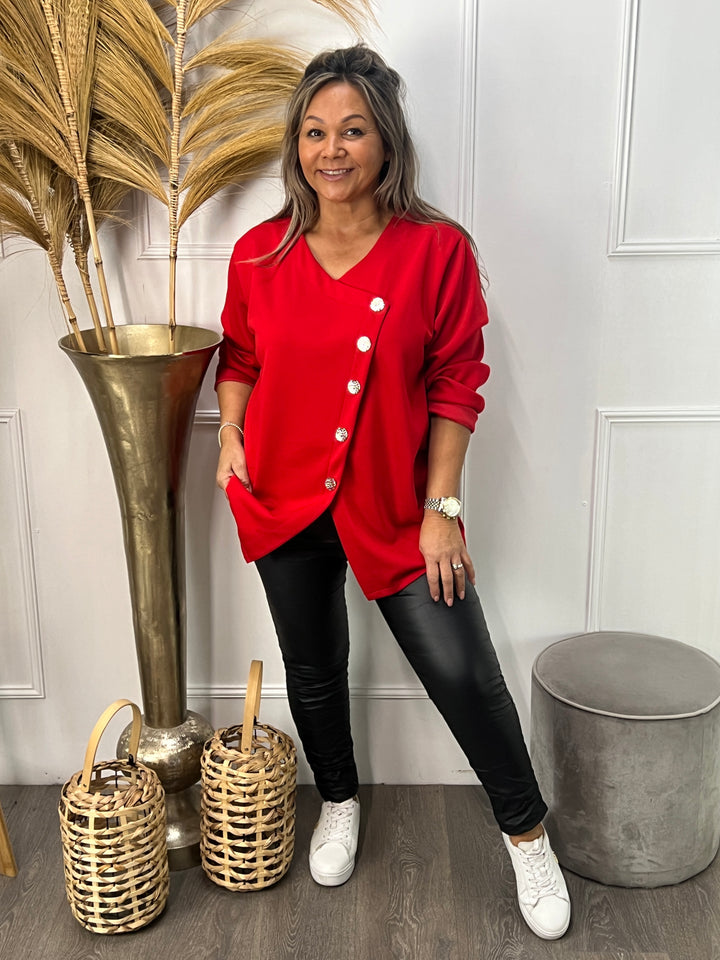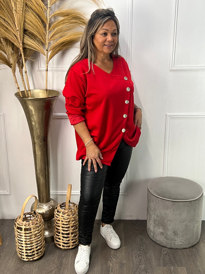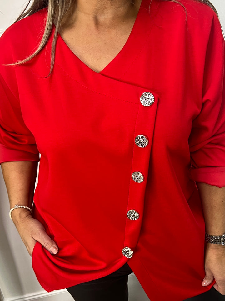 Button sweater Belladonna rood