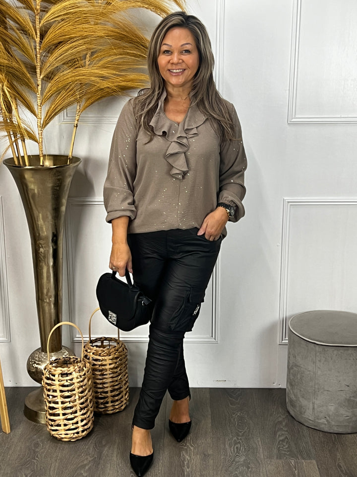 - Model: Een super stoere cargo coating broek met een subtiel 'bling' detail. Stoer, comfy en gewoon leuk.