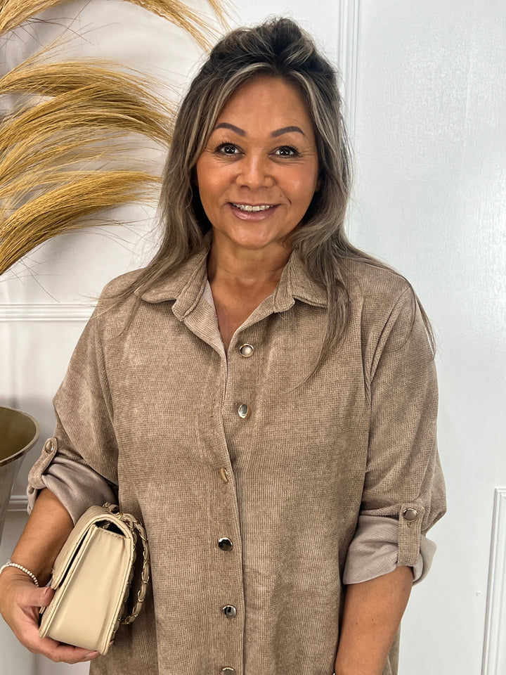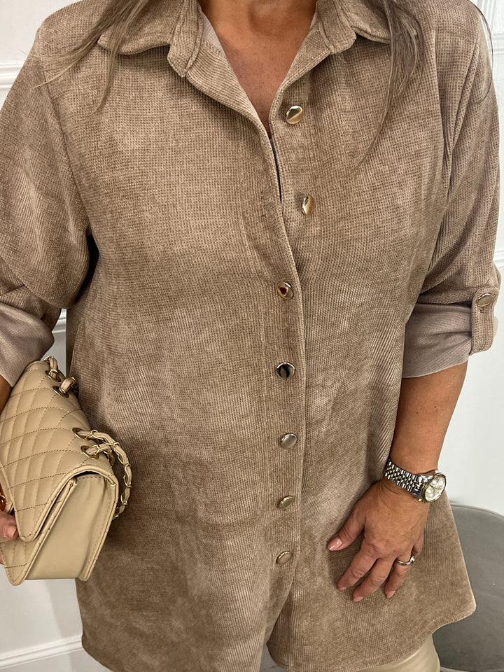 - Model: Een super leuke, zachte corduroy doorknoop blouse voorzien van ophaalmouwen. Kan als blouse, als vestje, maar ook als tuniekje gedragen worden. Eindeloos te combineren werkelijk waar!