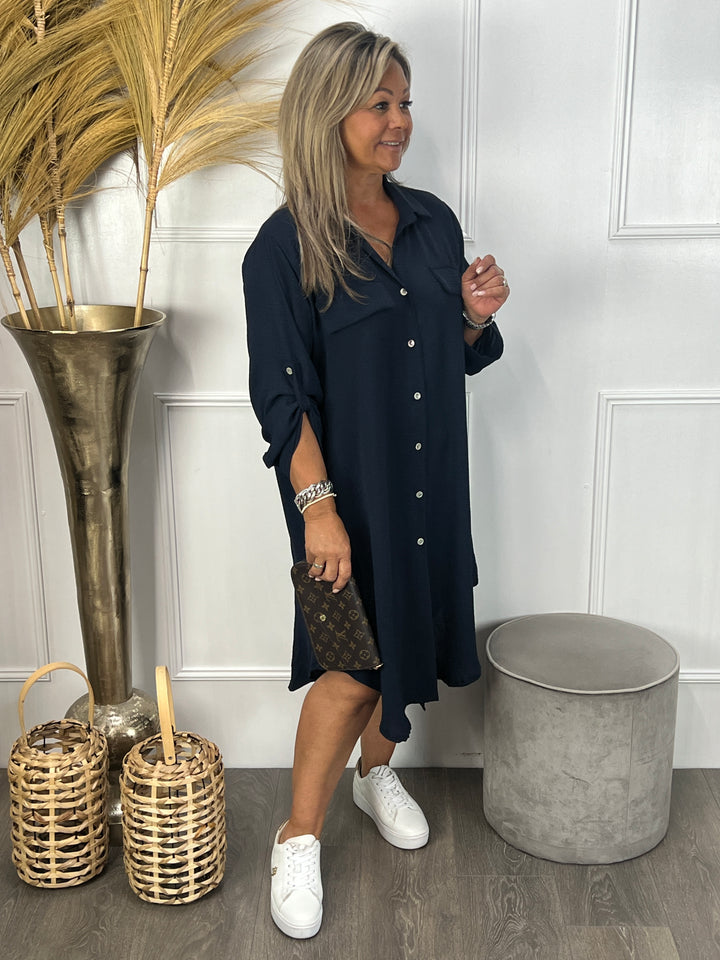 - Model: Een leuke doornkoopblouse die voor verschillende doeleinden gebruikt kan worden, zullen we maar zeggen. Kan als blouse, als jurkje met een paar leuke hakken eronder, maar je kunt er natuurlijk een casual look mee maken en dan draag je de blouse bijvoorbeeld op een spijkerbroek met een top, open, als vestje zijnde! Wederom eindeloos te combineren.