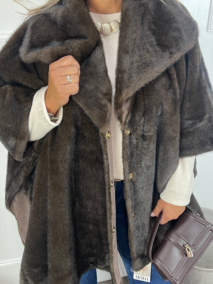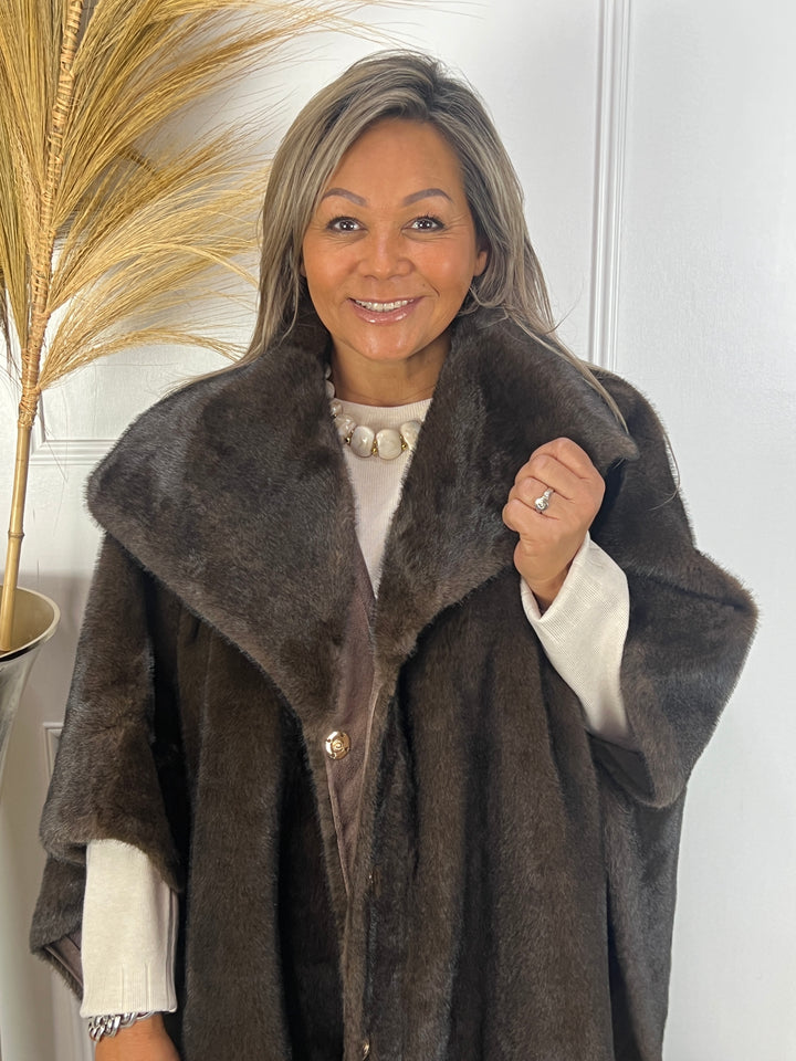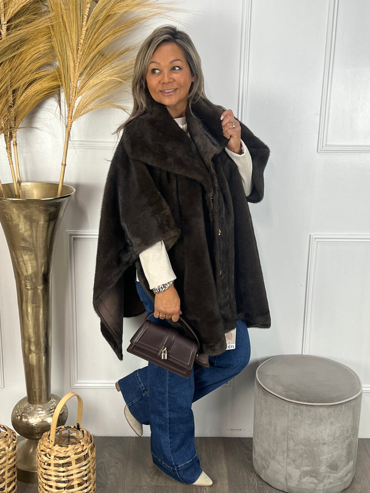 Faux fur poncho jas bruin
