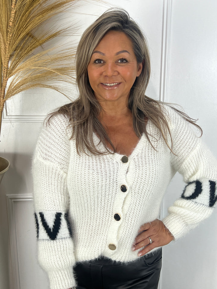- Model: Wat een schatjes! Nieuwe, super zachte fluffy vestjes met op de mouwen 'LOVE' en voorzien van goudkleurige knoopjes. Welke kleur is jouw favoriet?