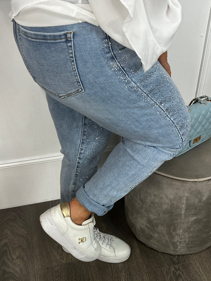 - Model: Wat een te gekke nieuwe jeans is dit. Deze bling bling jeans van het jeans merkje G-smack is een echte eyecatcher. Voorzien van glinsterende steentjes aan de voorzijde van de broekspijpen. Helemaal hip, helemaal leuk!