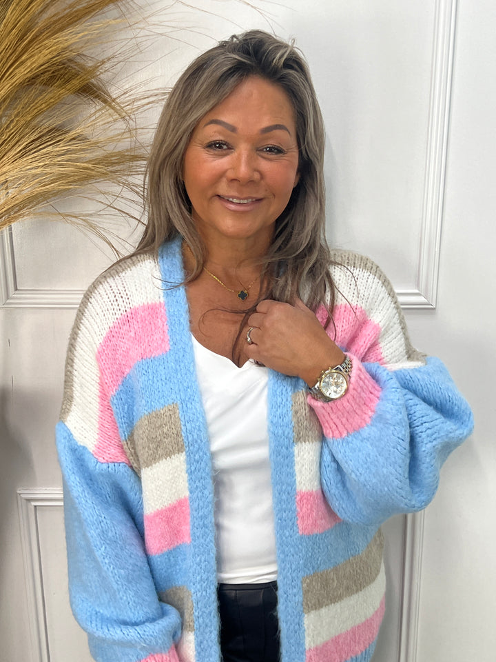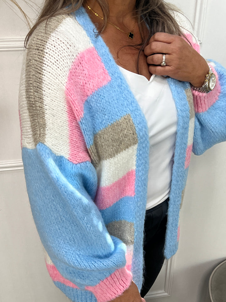 - Model: Een fantastisch leuk, gebreid vestje voorzien van een streep motief in meerdere kleuren. Dit vrolijkt jouw najaarsgarderobe echt he-le-maal op!