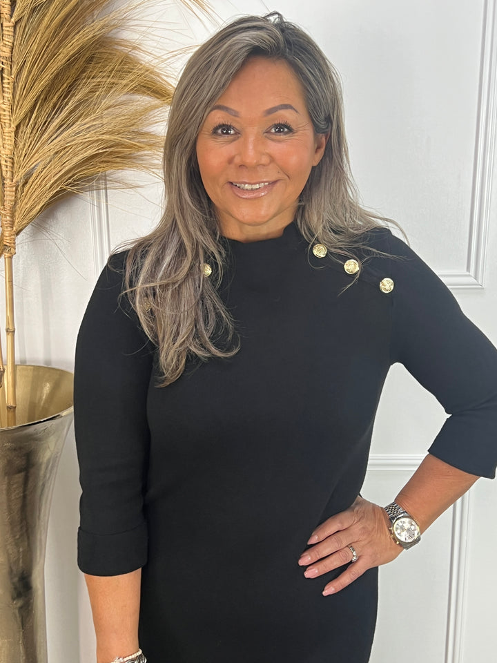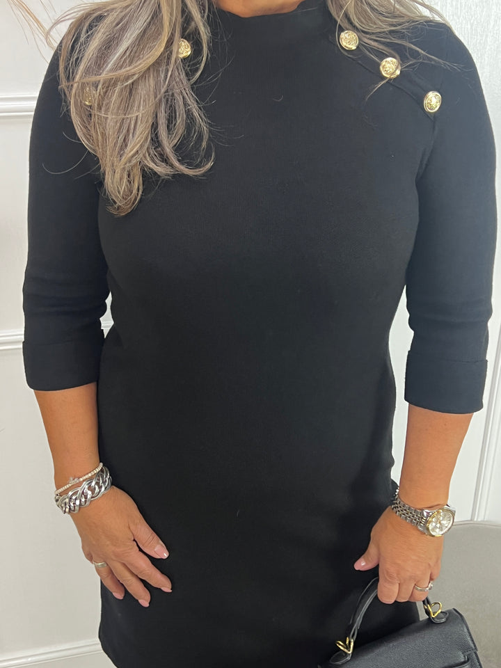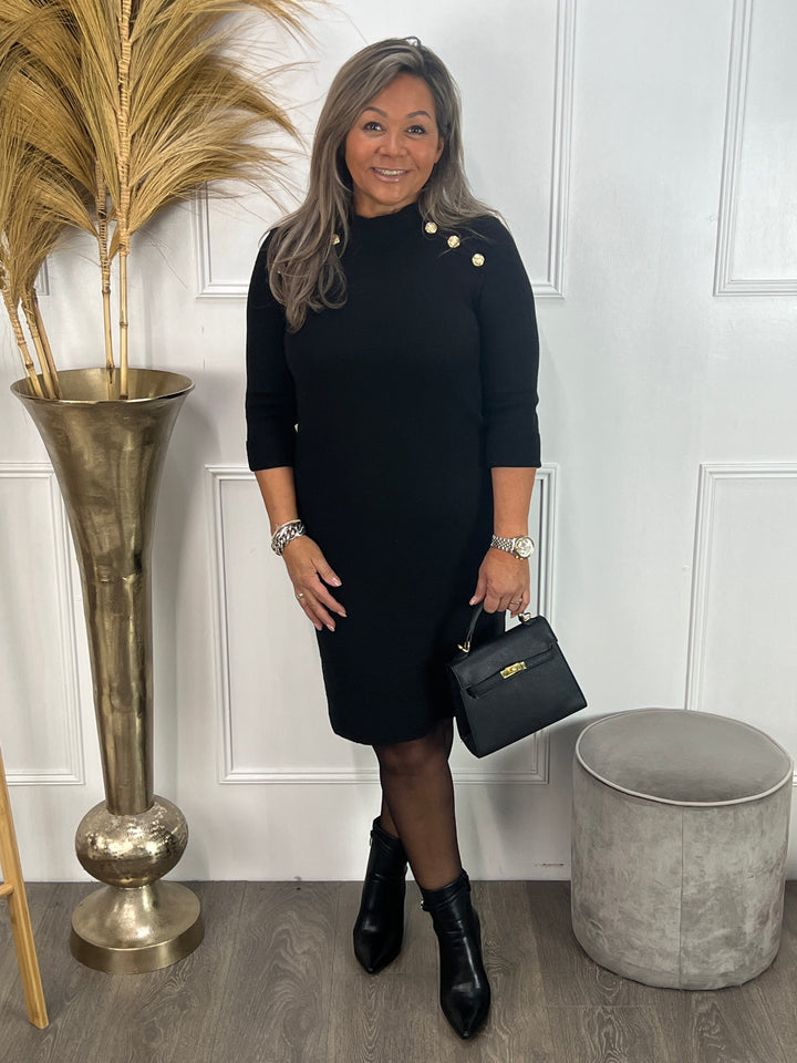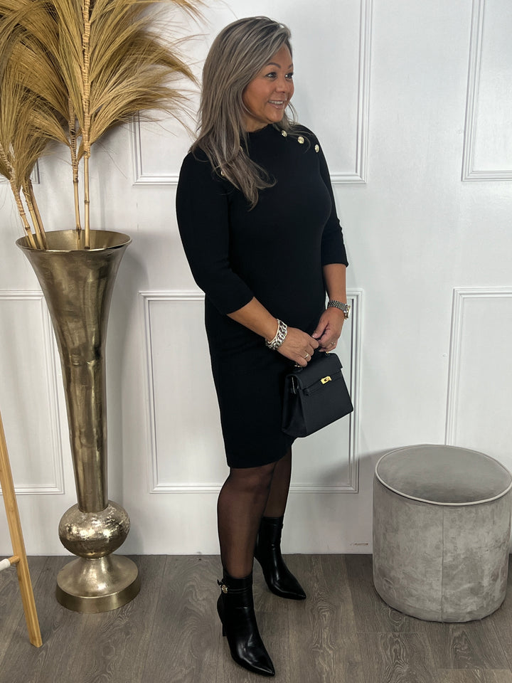 - Model: Een super mooi, gebreid jurkje met lange mouwen en sierknopen aan de voorzijde ter hoogte van de schouders.
