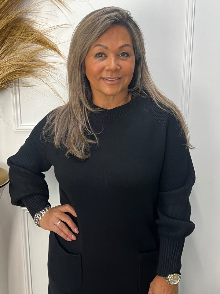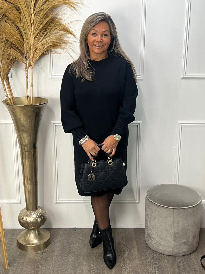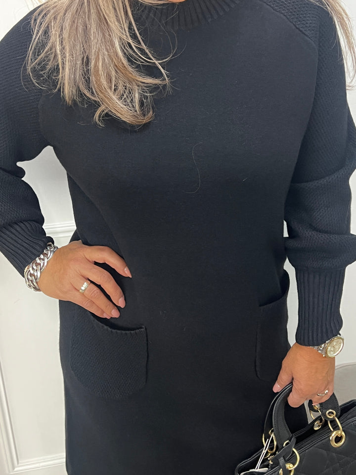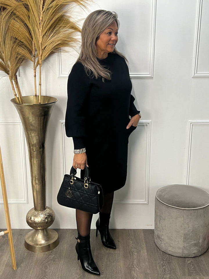 - Model: Een hele mooie, gebreide jurk voorzien van mooi subtiele bewerkte pofmouwen, twee zakjes aan de voorkant en verder gewoon helemaal chic! Kan natuurlijk ook casual of stoer gedragen worden met sneakers eronder of grove boots.