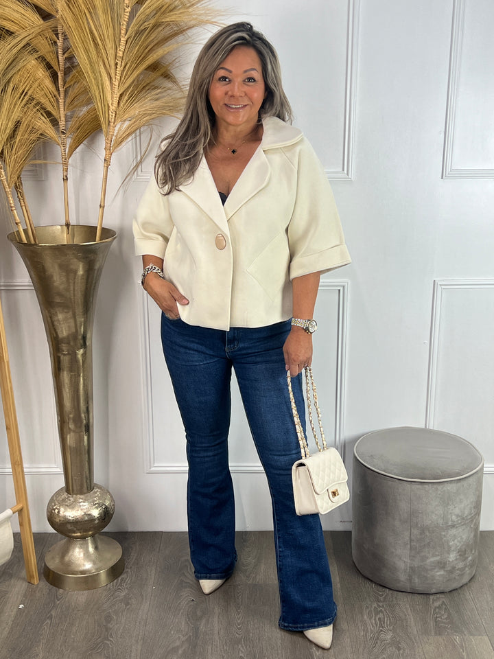 - Miriam is 1.62, heeft van zichzelf confectie maat 38/40 en draagt maat 42 van deze Goodies flare jeans.