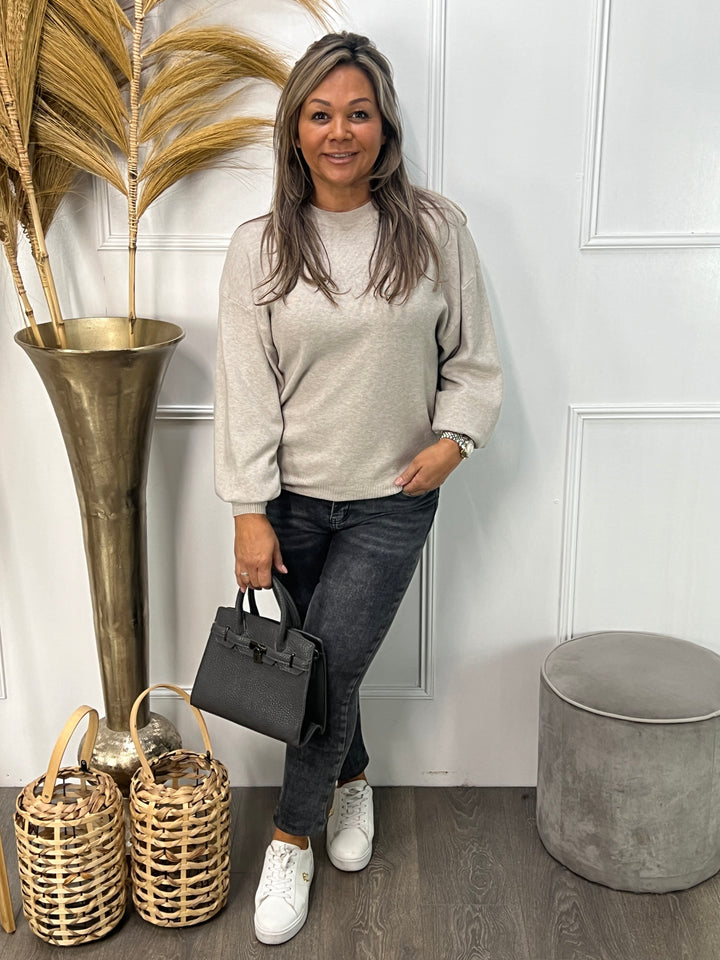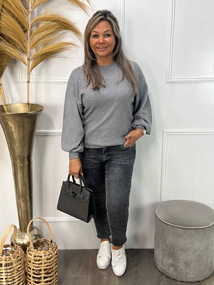 - Miriam is 1.62, heeft van zichzelf confectie maat 38/40 en draagt maat 40 van deze grijze Goodies.