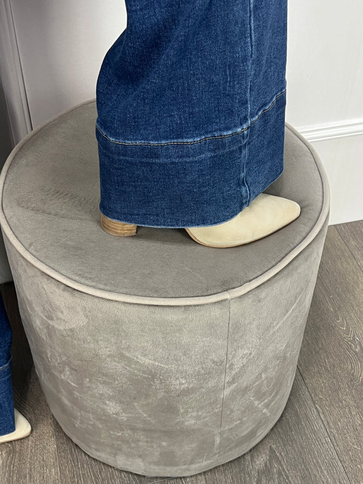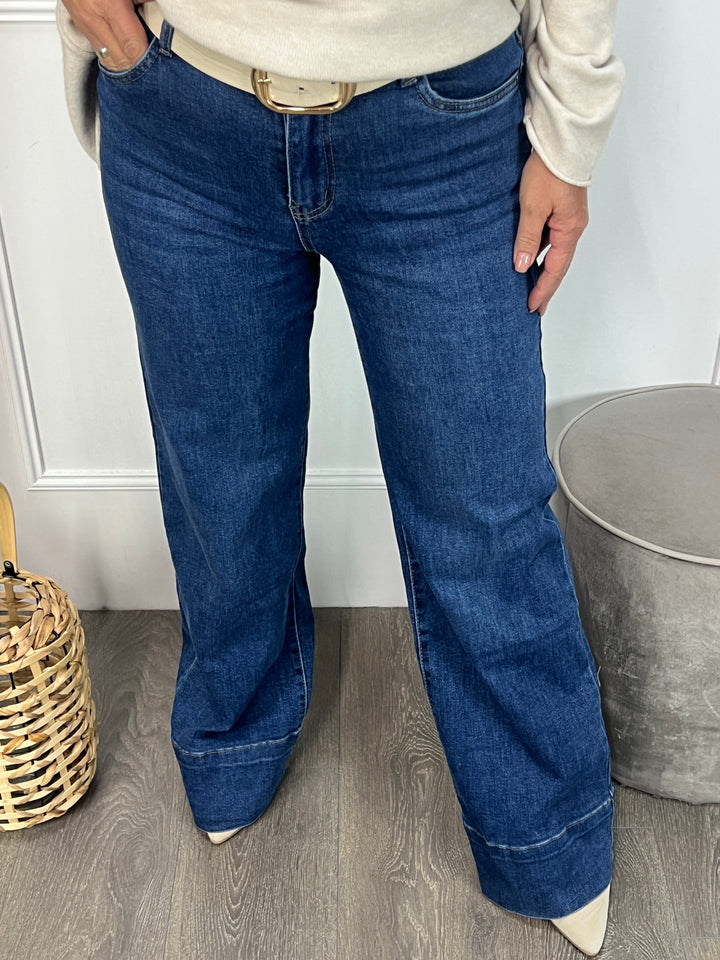 - Model: Een hele mooie, donkerblauwe, wide leg Goodies jeans met een hoge taille. Voorzien van zowel steek- als kontzakken, een ritssluiting met knoop en uiteraard riemlussen. De broek bevat stretch en heeft een mooie, donkere wassing.