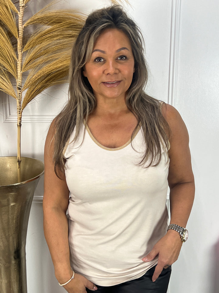 - Model: Een heel fijn, zacht, soepel hemd gemaakt van viscose met als subtiel detail leuke, goudkleurige randjes.