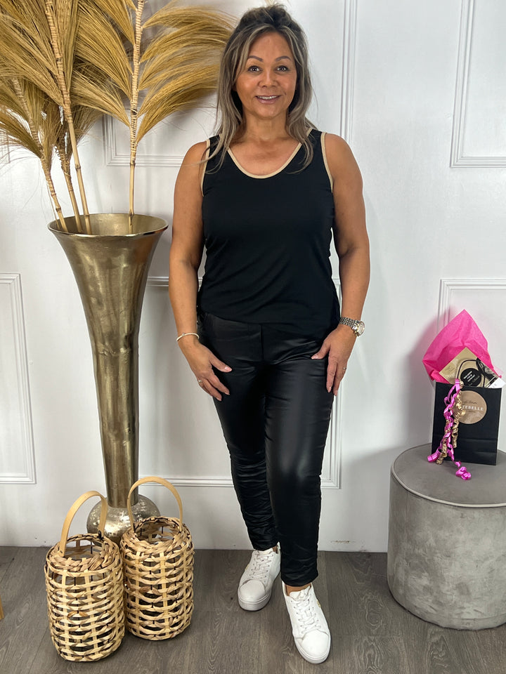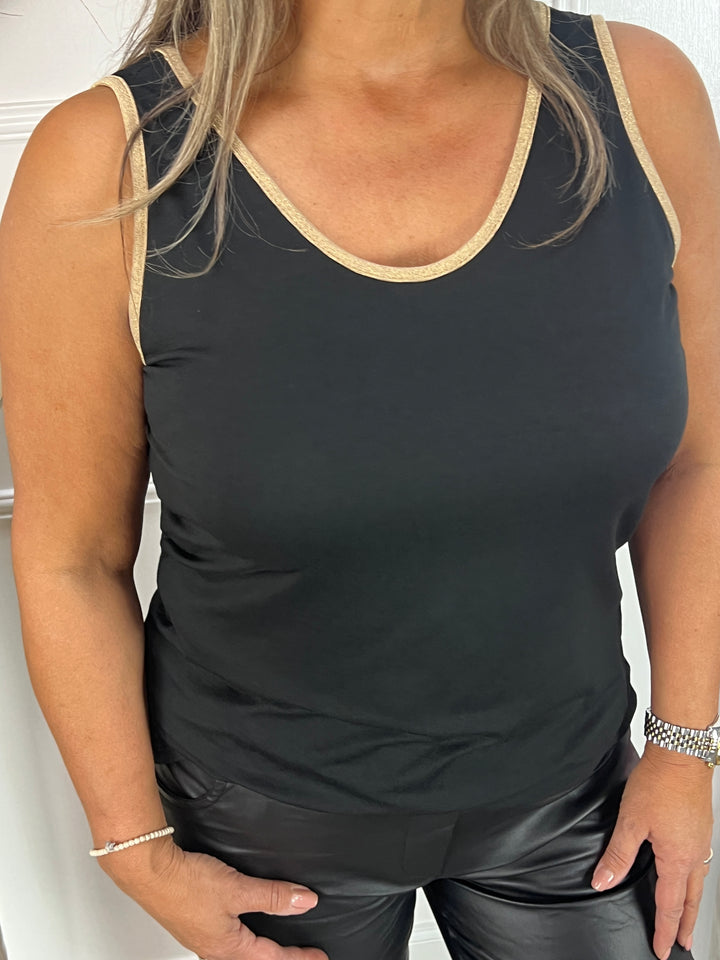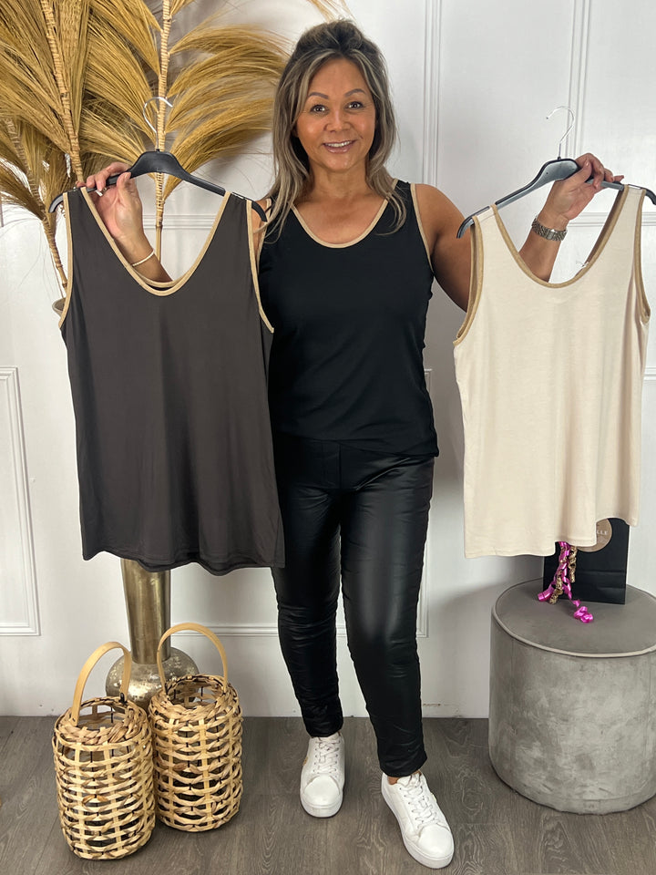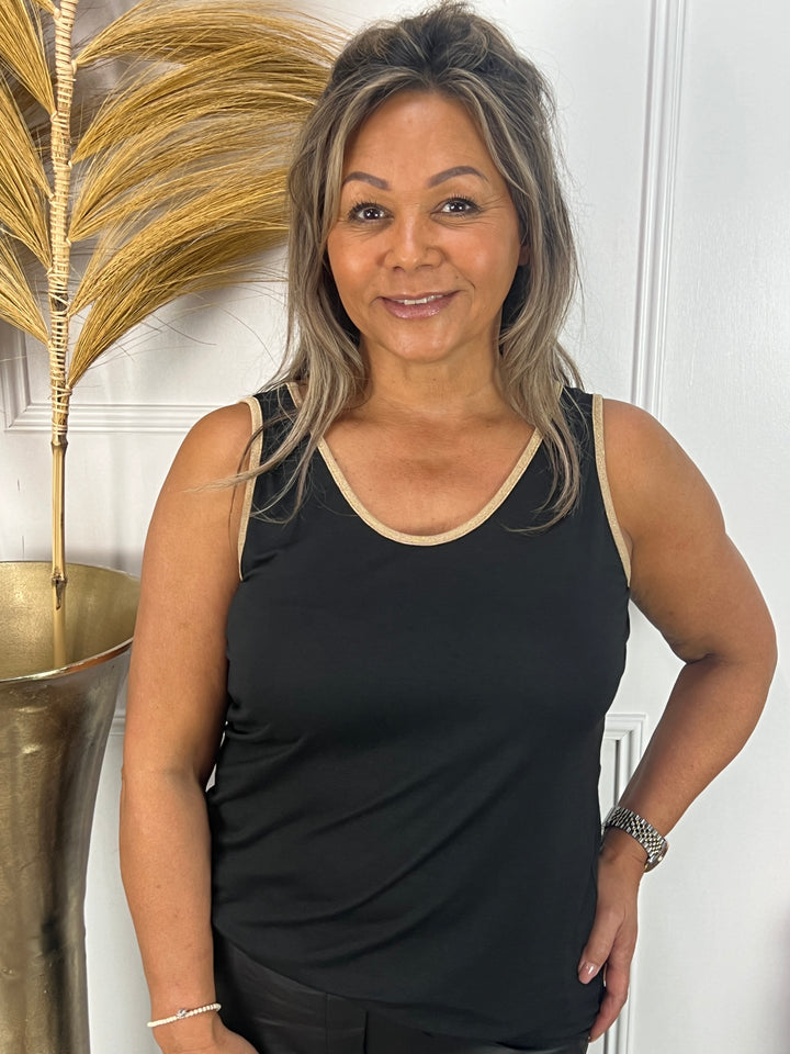 - Model: Een heel fijn, zacht, soepel hemd gemaakt van viscose met als subtiel detail leuke, goudkleurige randjes.