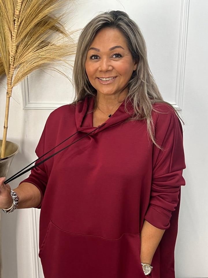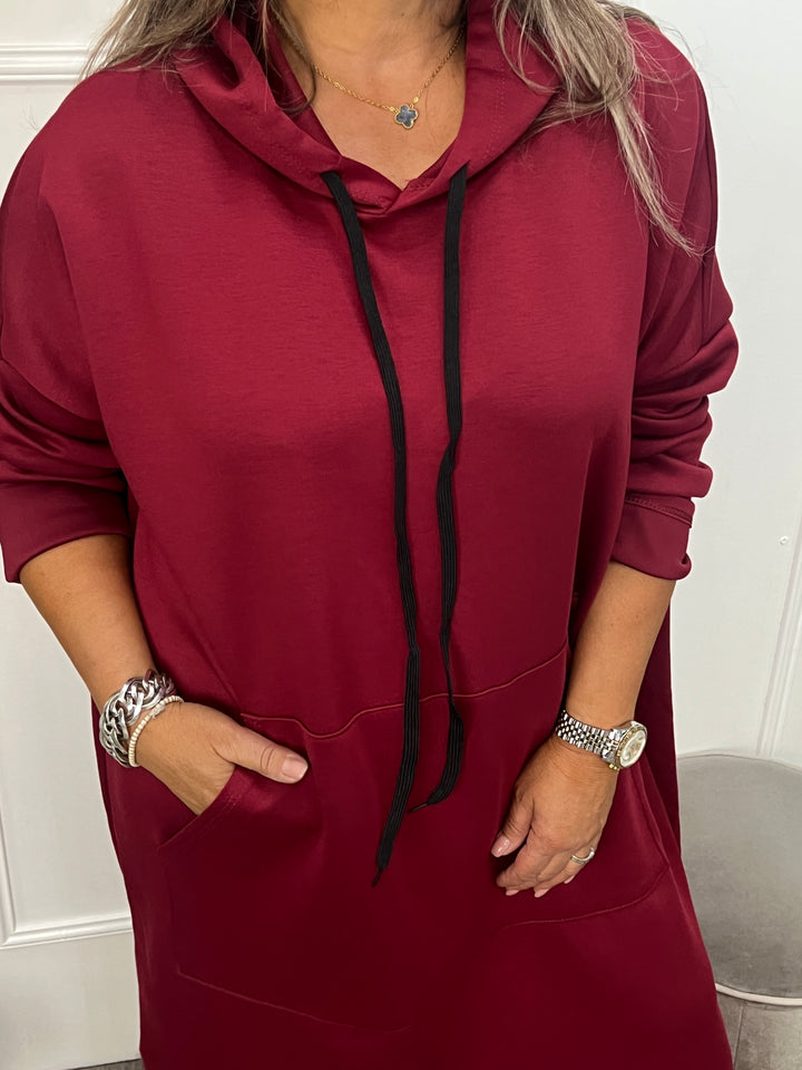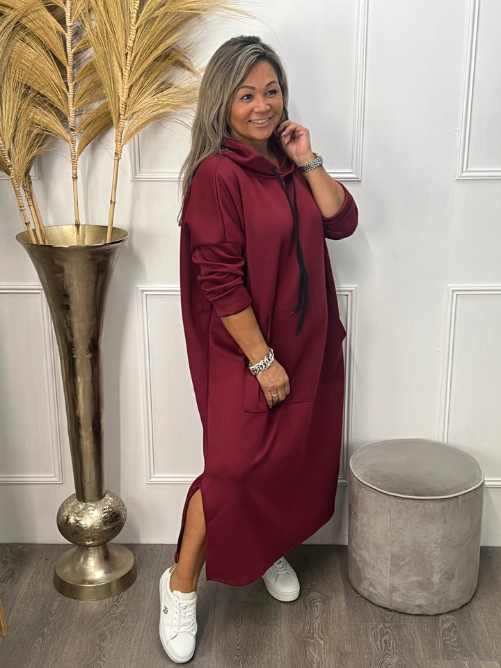 - Model: Dit is echt een leukerd! Hoodie jurk Jolanda is een lange, comfy jurk die stoer oogt en mega lekker zit. Voorzien van een buidelzak aan de voorzijde, splitjes aan de onderkant en uiteraard, hoe kan het ook anders een hoodie capuchon met een aanrijgveter. Verkrijgbaar in verschillende kleuren.