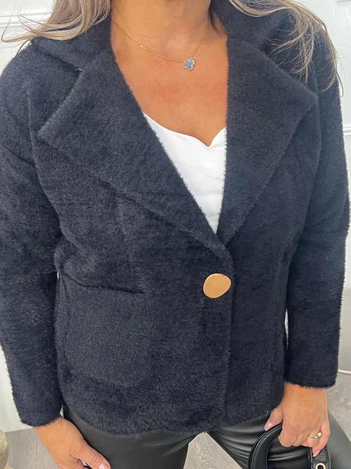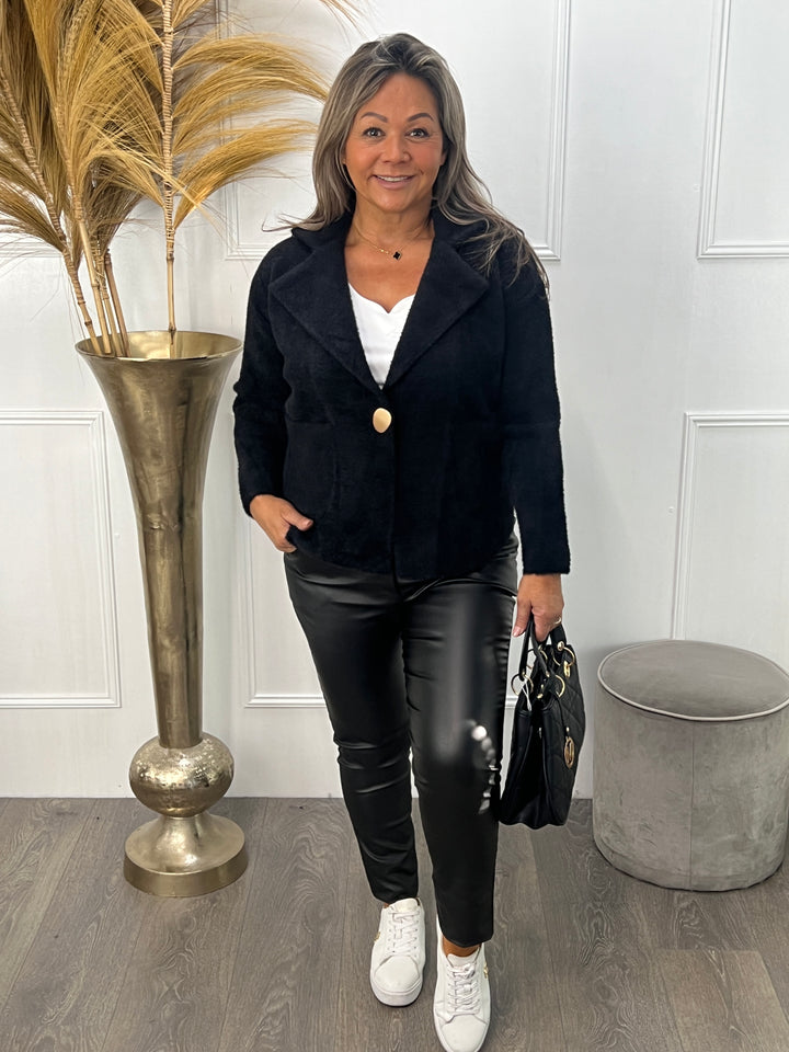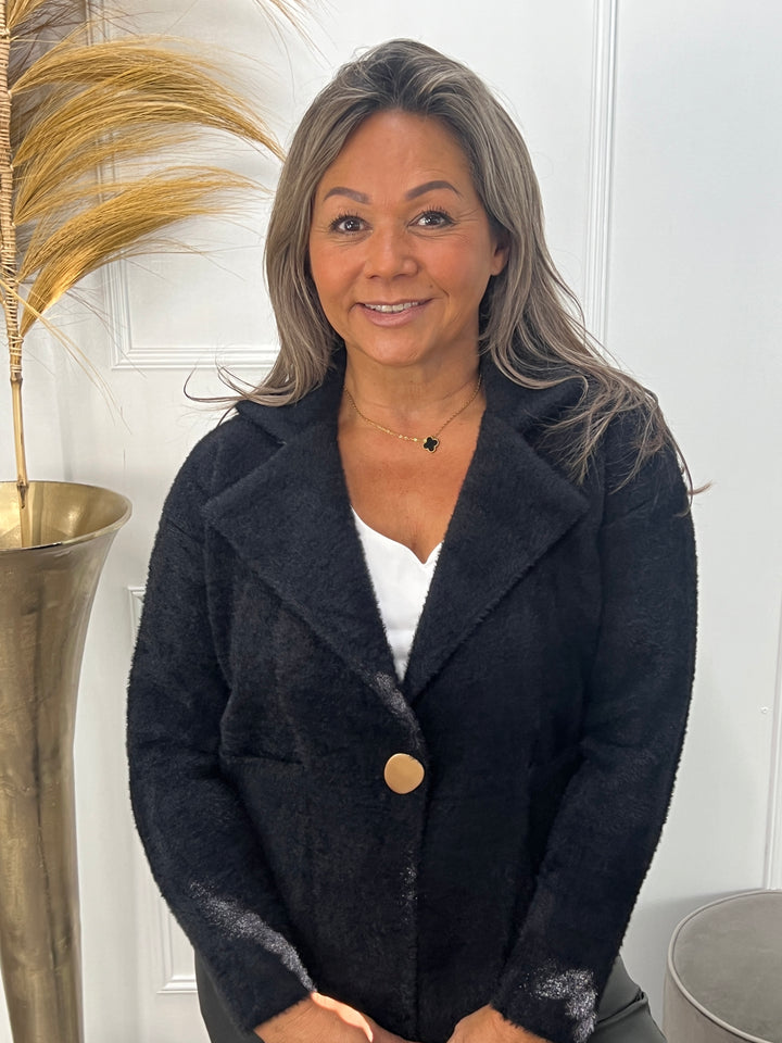 - Model: Een prachtig mooi jas vestje gemaakt van stevige en mooie kwaliteit. Voorzien van heel zacht, licht harig materiaal en aan de voorkant een goudkleurige drukknoop. Helemaal chique de friemel.