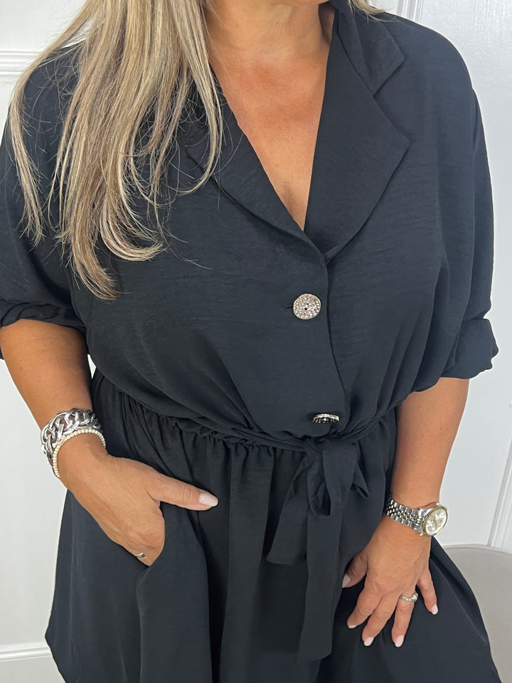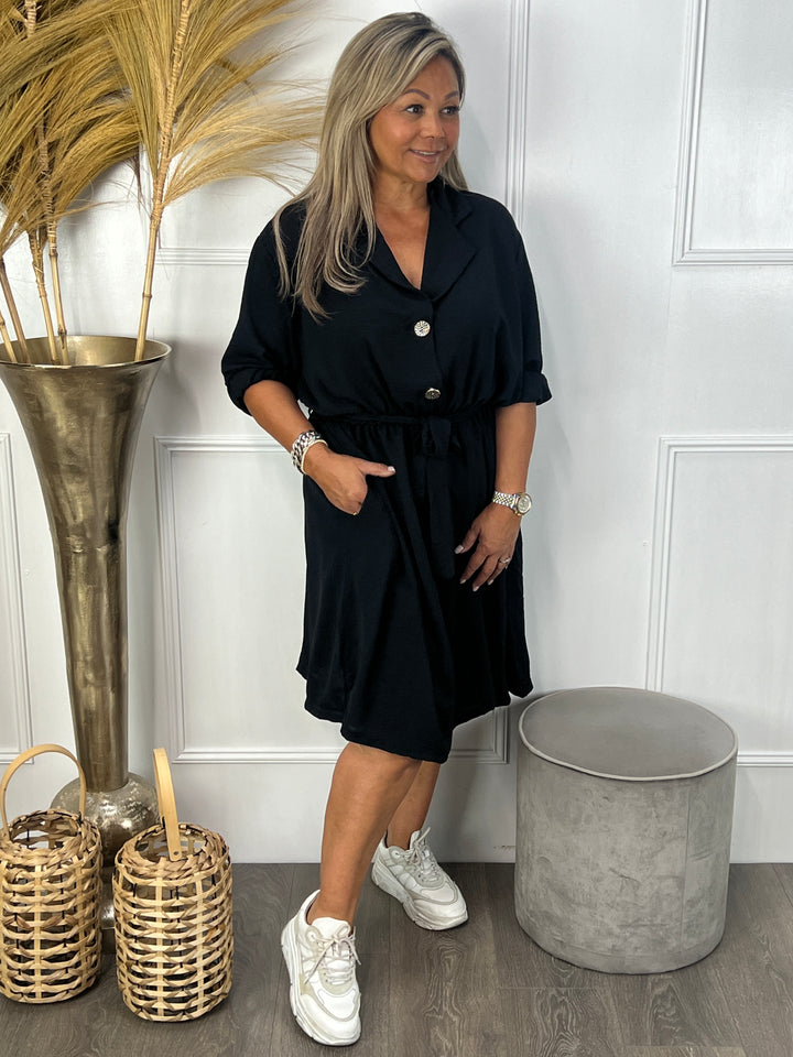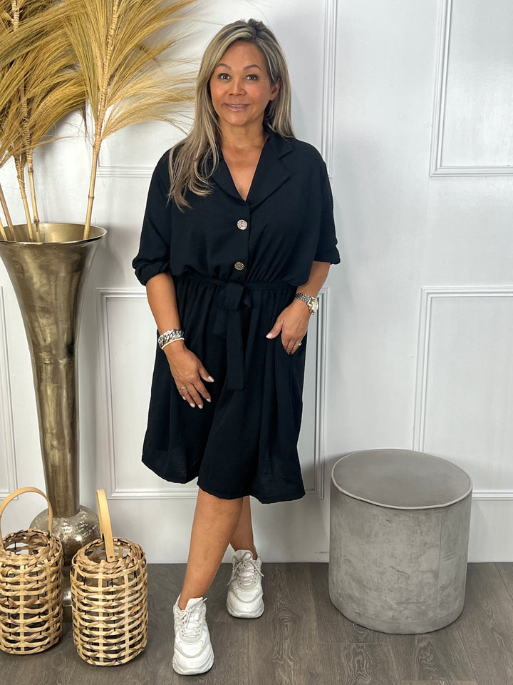 - Model: Kijk eens even wat een heerlijk jurkje dit is. Voorzien van een los, maar bijpassend ceintuur, twee mooie knopen aan de voorzijde en, en, en... zakjes! Hoe fijn? Verkrijgbaar momenteel in twee kleuren.