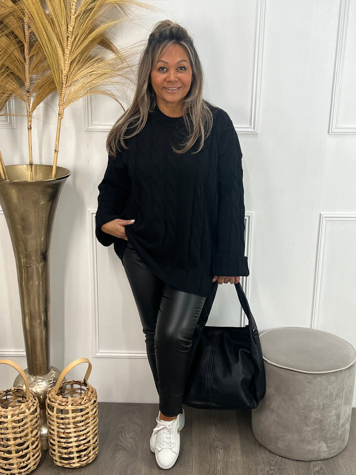 - Model: Echt een hele leuke kabeltrui die lekker oversized valt met een lange en ietwat wijd uitlopende mouw. Helemaal leuk, stoer, gaaf en helemaal de trend! Welke kleur is jouw favoriet?