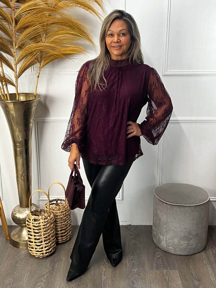 - Model: Kijk eens even... Wauw! Dit is toch echt een plaatje van een blouse? Een hele mooie kanten blouse met een ingenaaide top, waardoor deze niet doorschijnt. Prachtig. Mooi voor elke gelegenheid, maar zeker ook met een knipoog naar de feestdagen. Voor welke kleur ga jij?
