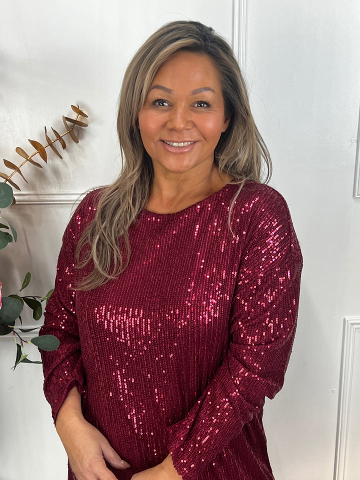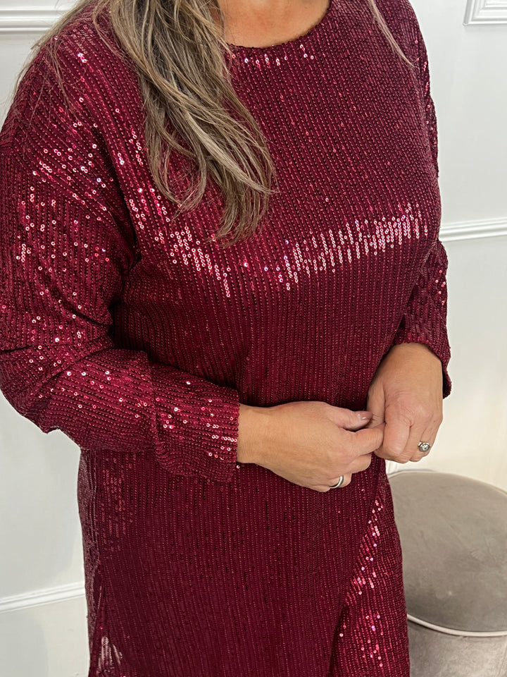 Pailletten jurk Ribbon bordeauxrood
