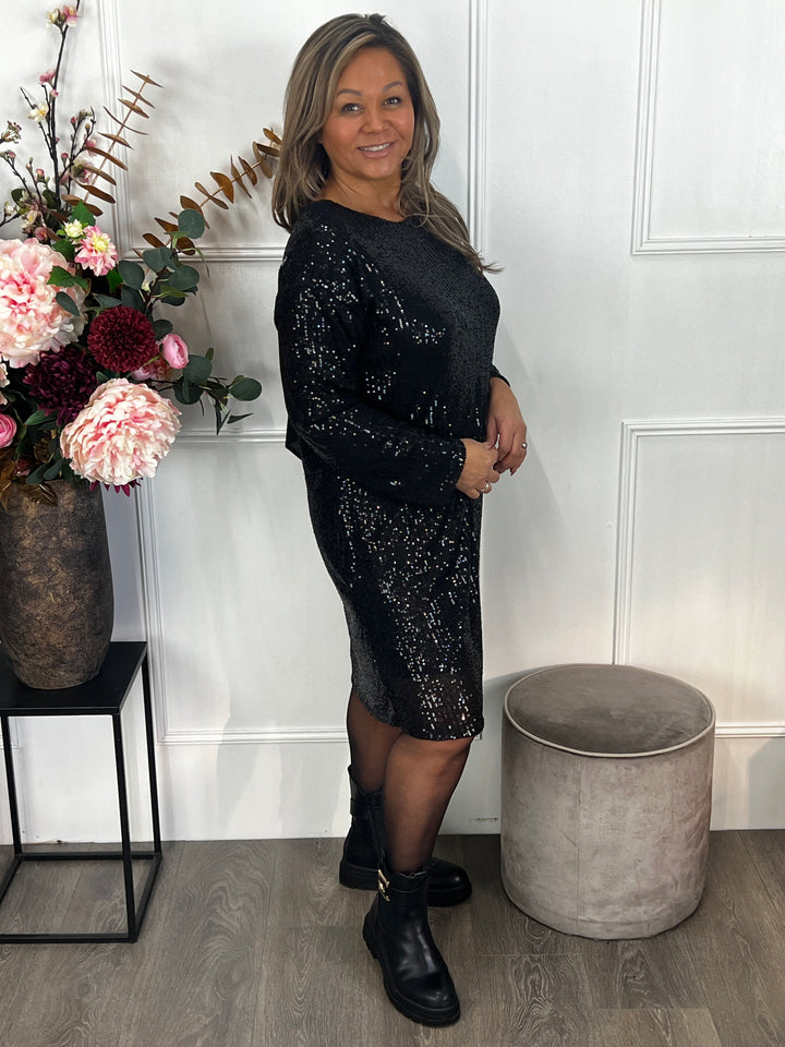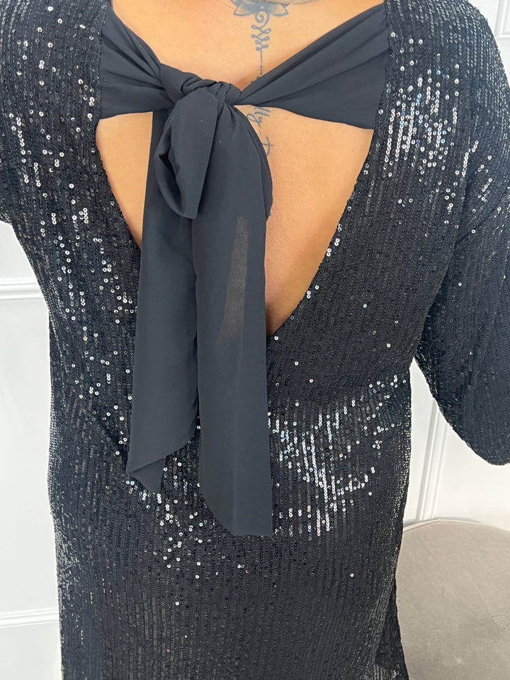 - Model: Wat een onwijs leuke, feestelijke jurk is dit. Jurk Ribbon heeft een prachtige, grote strik op de rug en is voor de rest helemaal voorzien van glinsterende pailletjes. Wees er op tijd bij, want op is helaas op!