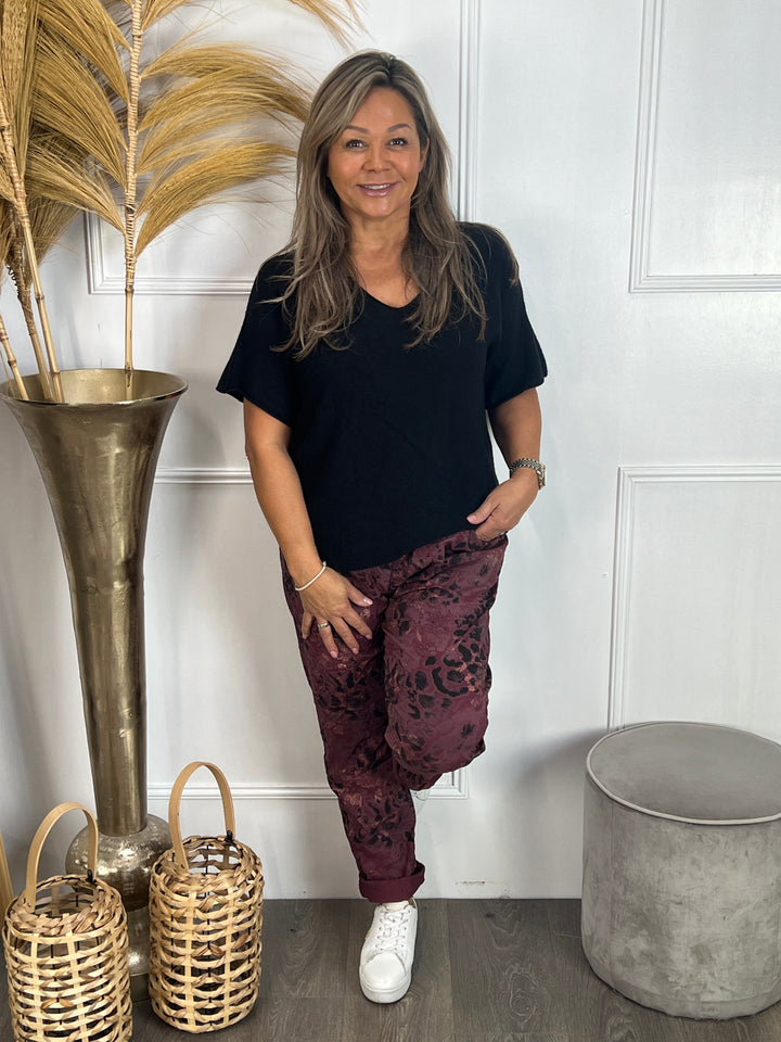 - Model: Jullie favoriete broek is er weer en dit keer met deze fantastische print. Voorzien van een soort dierenprint met hier en daar wat glitters. Verder heeft de broek een middelhoge tailleband met lekker veel stretch en ook heeft de broek zowel steek- als kontzakken. Iets voor jou? Bestel dan snel bij Tuttebelle.