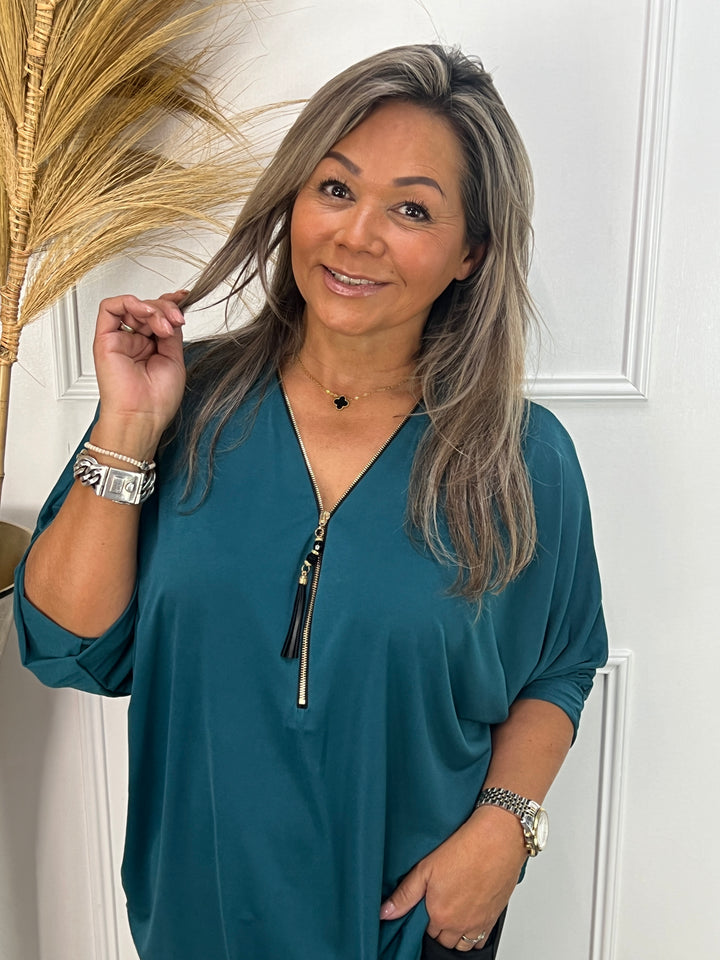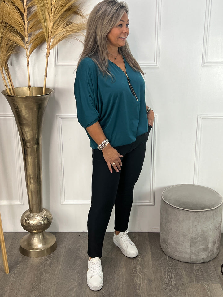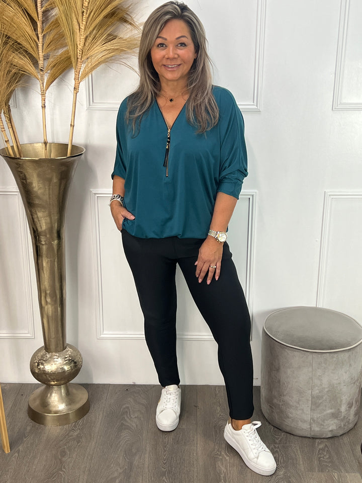 - Model: Een hele mooie, fijne travel top met een leuk rits detail aan de voorkant, wat ook als een soort sieraad mag dienen. Helemaal leuk, helemaal gezellig. Combineer bijvoorbeeld met onze o-zo-altijd-fijne Angelia broekjes. Dè tregging broeken die niet mogen ontbreken in jouw garderobe. Beiden zijn slechts te shoppen tegen een mega scherp prijsje. Ik zou zeggen; wacht niet te lang.