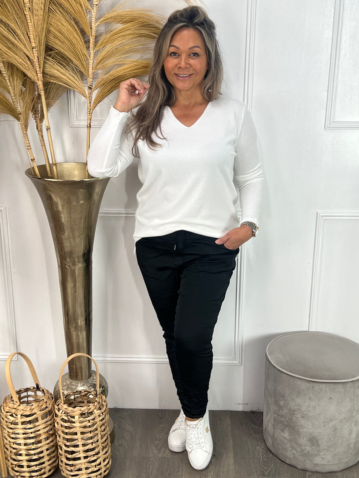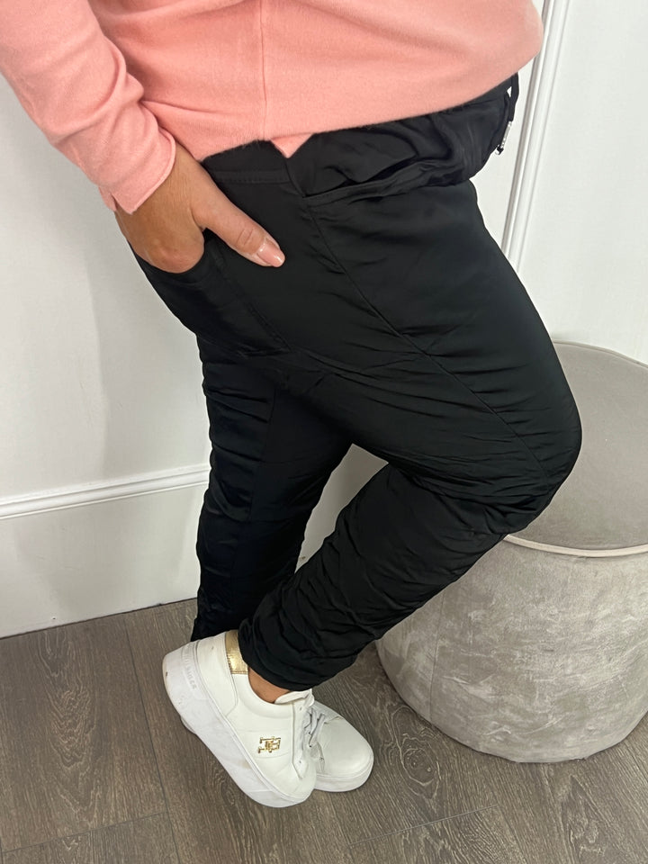 - Model: Een nieuwe favoriet! Satin stretch broek Sia is een stretch broek, zoals jullie van ons gewend zijn, maar dit keer met een mooie, maar subtiele glans laag. Verder, net als broek Anouk en Bella twee steek- en kontzakken, een aanrijgkoord rondom de taille en lekker veel stretch. Kortom: een top broek!