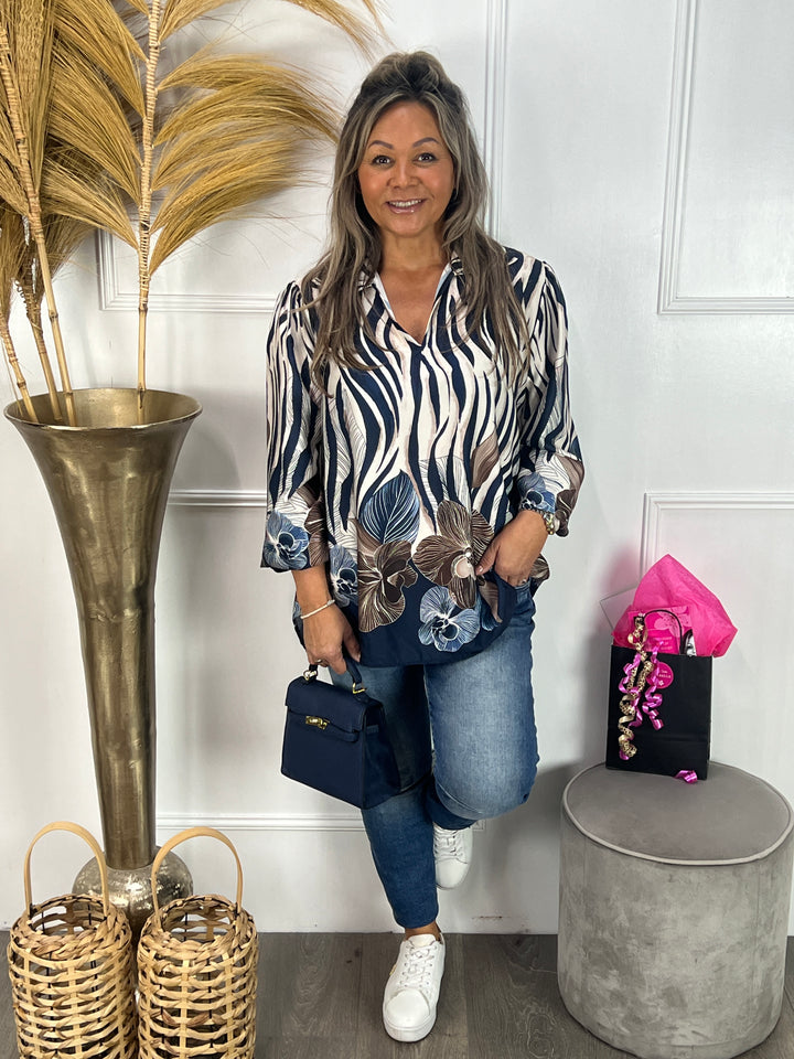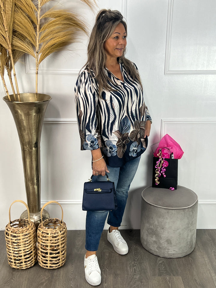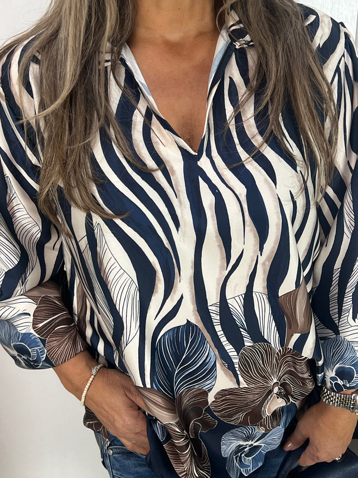 Silk blouse Silvia marineblauw