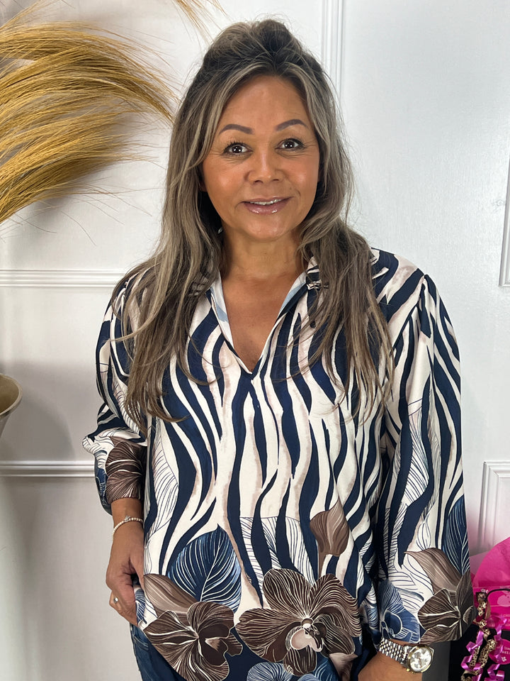 - Model: Een hele mooie, silky blouse met v-hals, kraagje, lange mouwen met elastische polsen en een hele gave print. Verkrijgbaar in verschillende warme kleuren. Welke kleur is jouw favoriet?