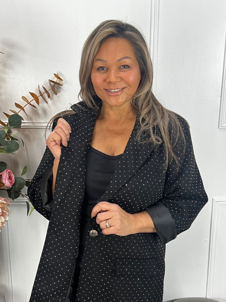 - Model: Deze nieuwe sparkle suèdine is echt wel een hele mooie verschijning. Voelt zacht, zit mooi en straalt vanwege de sparkle steentjes. Shop deze blazer online of in onze winkel.
