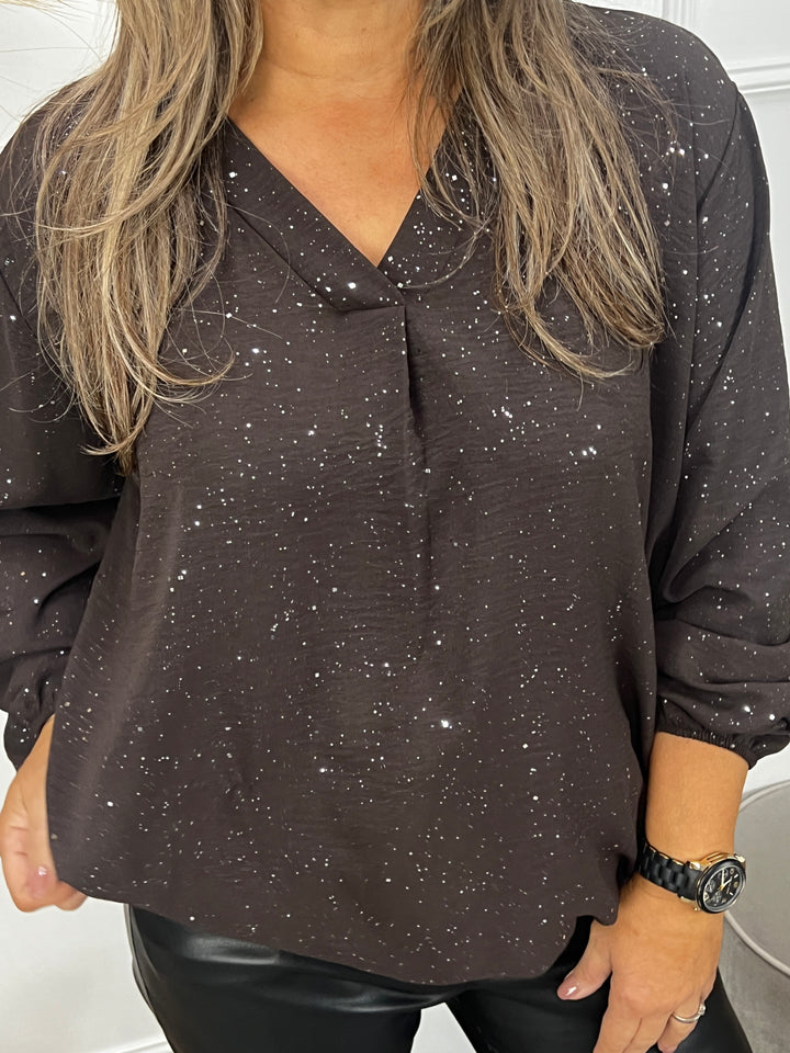 - Model: Heb jij toevallig nog wat ruimte in jouw kast? Laten we het hopen, want voor deze nieuwe sparkle (ballon) top wil jij vast wel wat plaats maken. Een schitterende top met een v-hals en een ballonmodel. Helemaal gezellig en leuk voor de feestdagen, maar zeer zeker ook voor andere (feestelijke) gelegenheden.