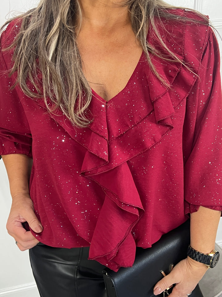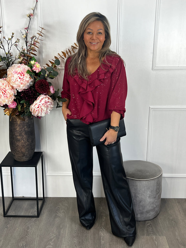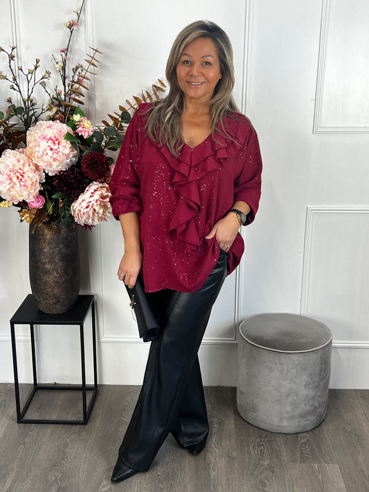 Sparkle top Jeanetta bordeauxrood
