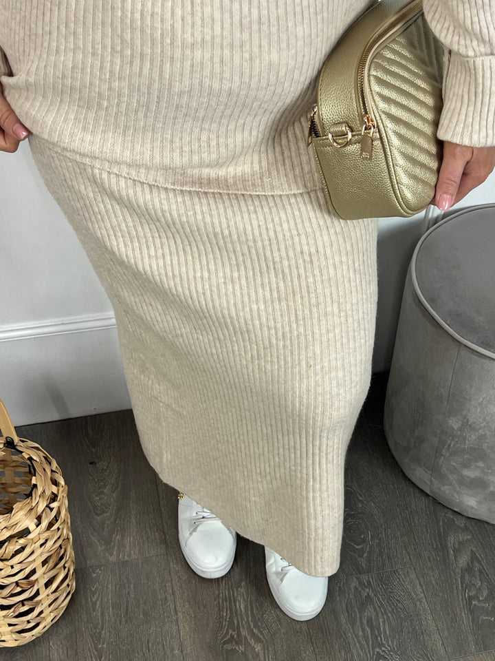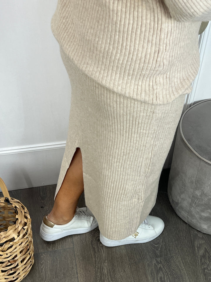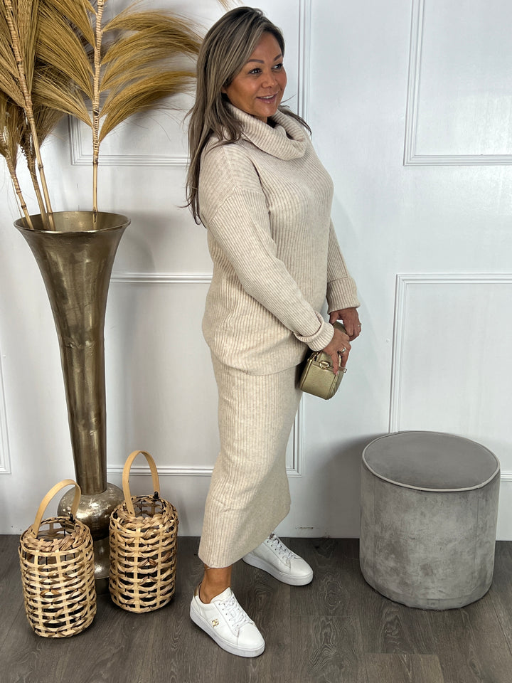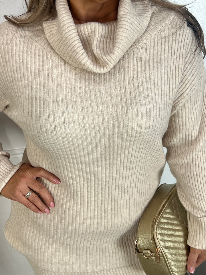 - Model: Een hele mooie, zacht gebreide, rib set bestaande uit een coltrui en een bijpassende rib rok. Lekker zacht, comfy, warm en helemaal hip! Verkrijgbaar in drie verschillende kleuren.