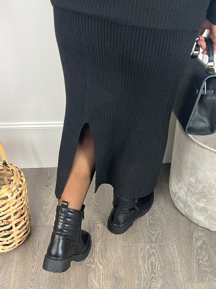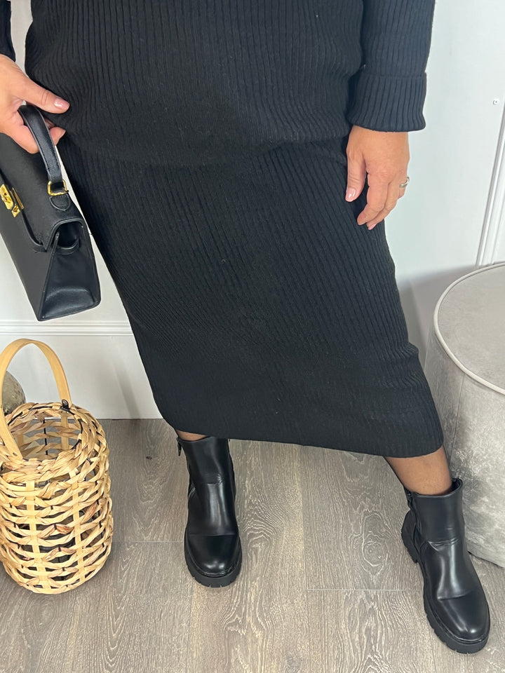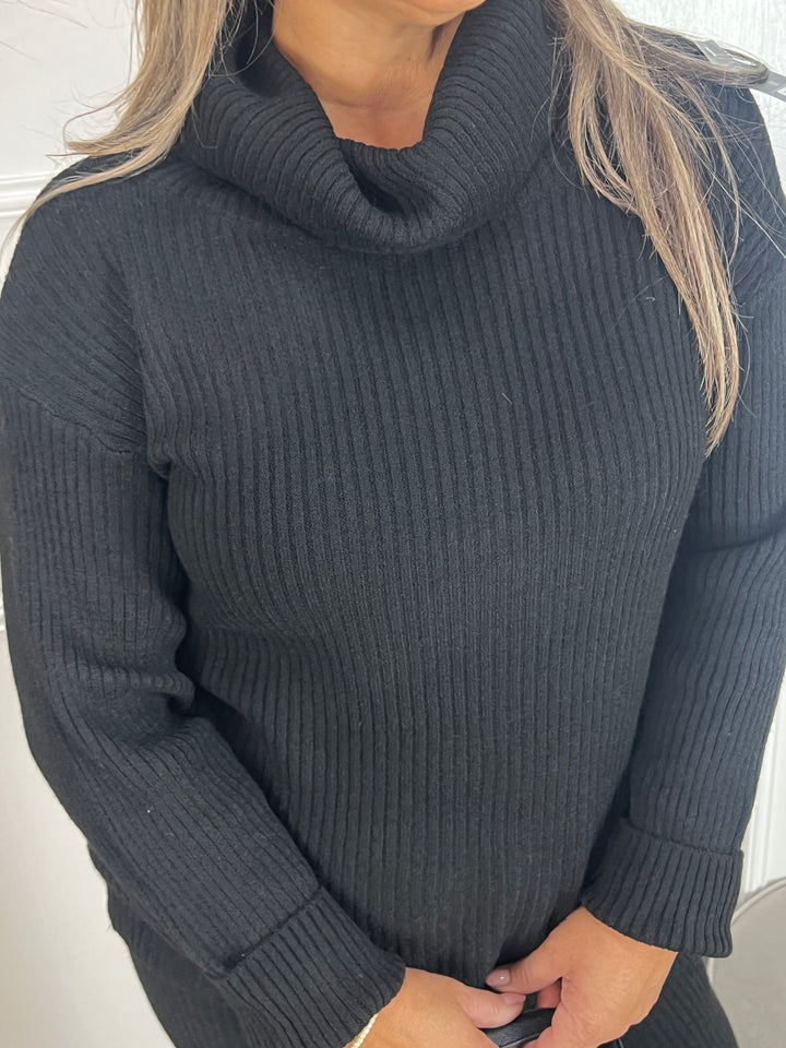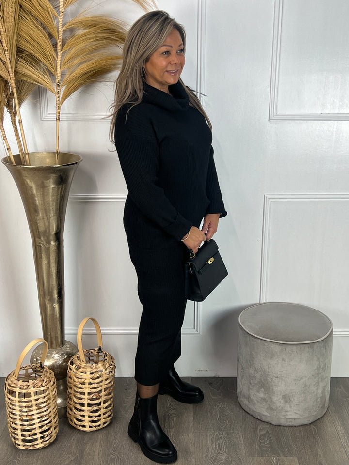 - Model: Een hele mooie, zacht gebreide, rib set bestaande uit een coltrui en een bijpassende rib rok. Lekker zacht, comfy, warm en helemaal hip! Verkrijgbaar in drie verschillende kleuren.