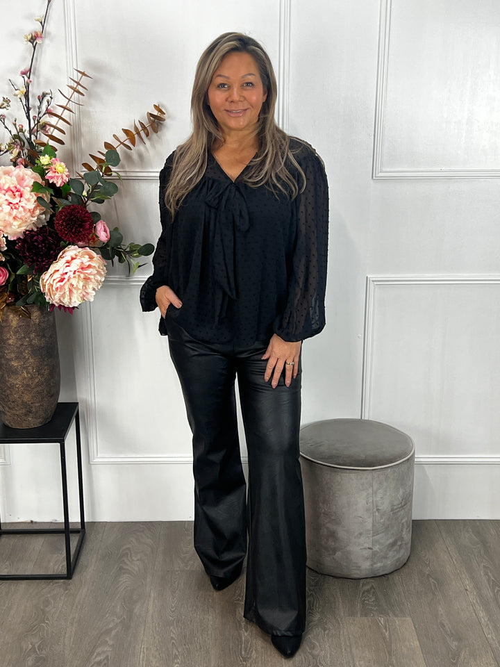 - Model: Een vegan leren basis broek met een elastische tailleband die jij met vele tops, blouses of sweaters zou kunnen combineren. Zo'n basis broek hoor jij eigenlijk wel in jouw kast te hebben.